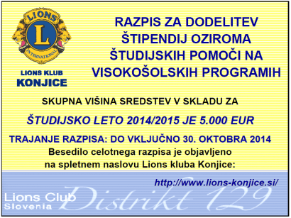 LK Konjice_izjava za javnost 06_RAZPIS ZA DODELITEV ŠTIPENDIJ ZA ŠTUD_LETO 2014_2015