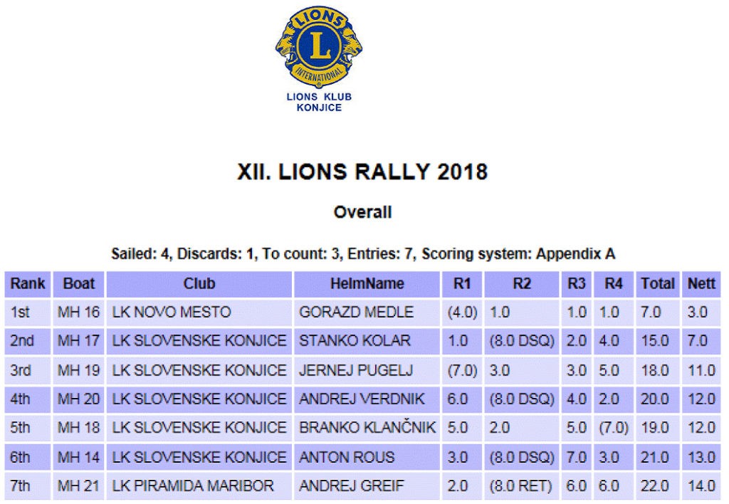 V imenu organizacijskega odbora priprave in izvedbe 12. ponovitve Lions rally-ja, humanitarne regate Lions rally 2018, se VAM zahvaljujem za vaš vnovičen in nesebičen prispevek ob uspešnem štiridnevnem druženju v Dalmaciji. Ponosni smo na zveste prijatelje Lions kluba Konjice, ki si znajo utrgati dragocene trenutke prostega časa in jih nameniti humanitarni vsebini, začinjeni z zdravo mero tekmovalnosti.