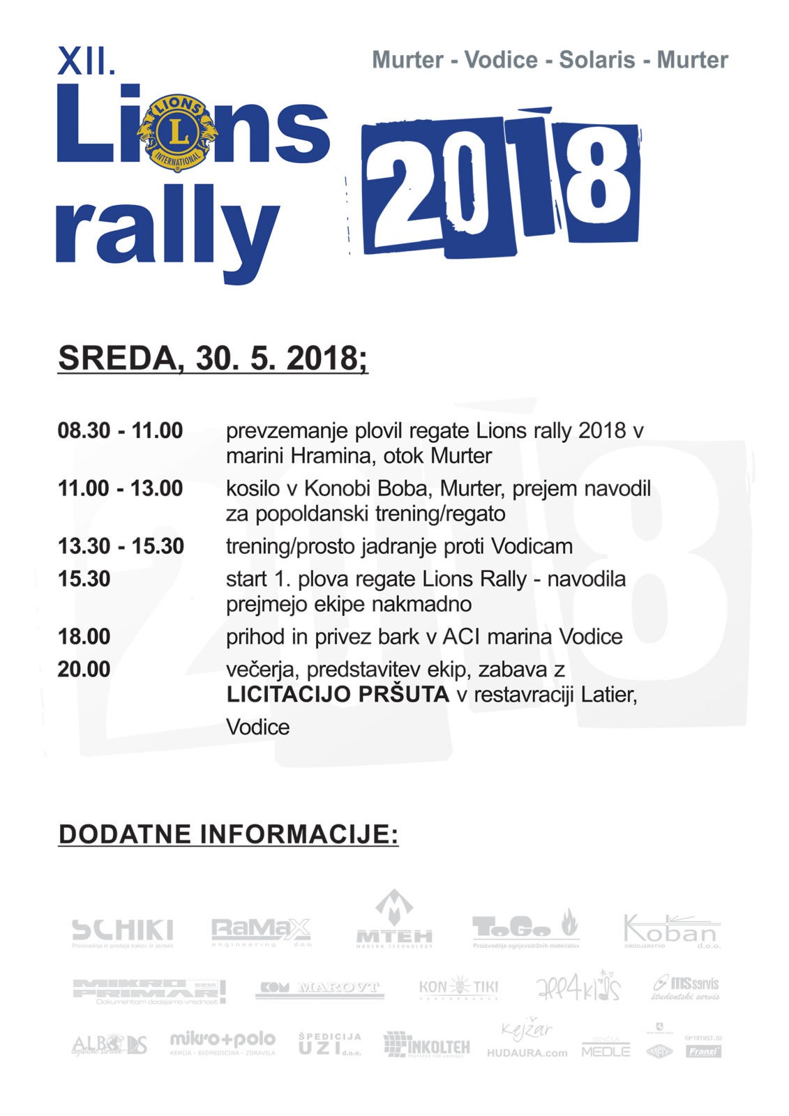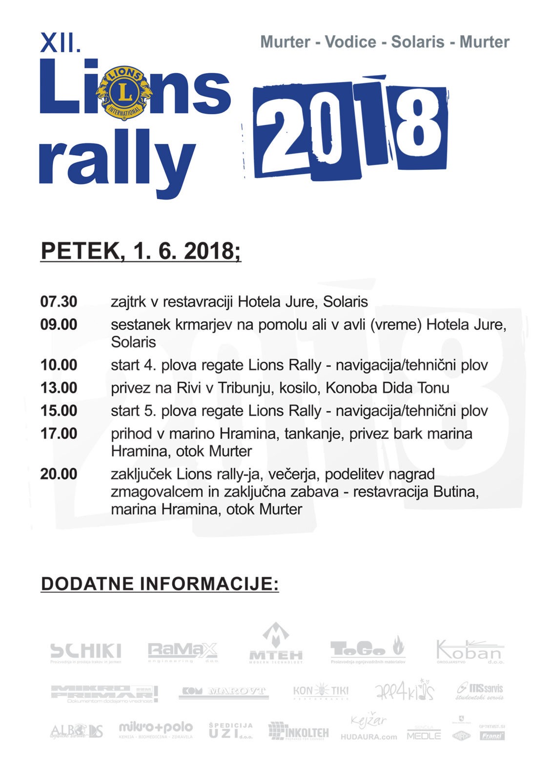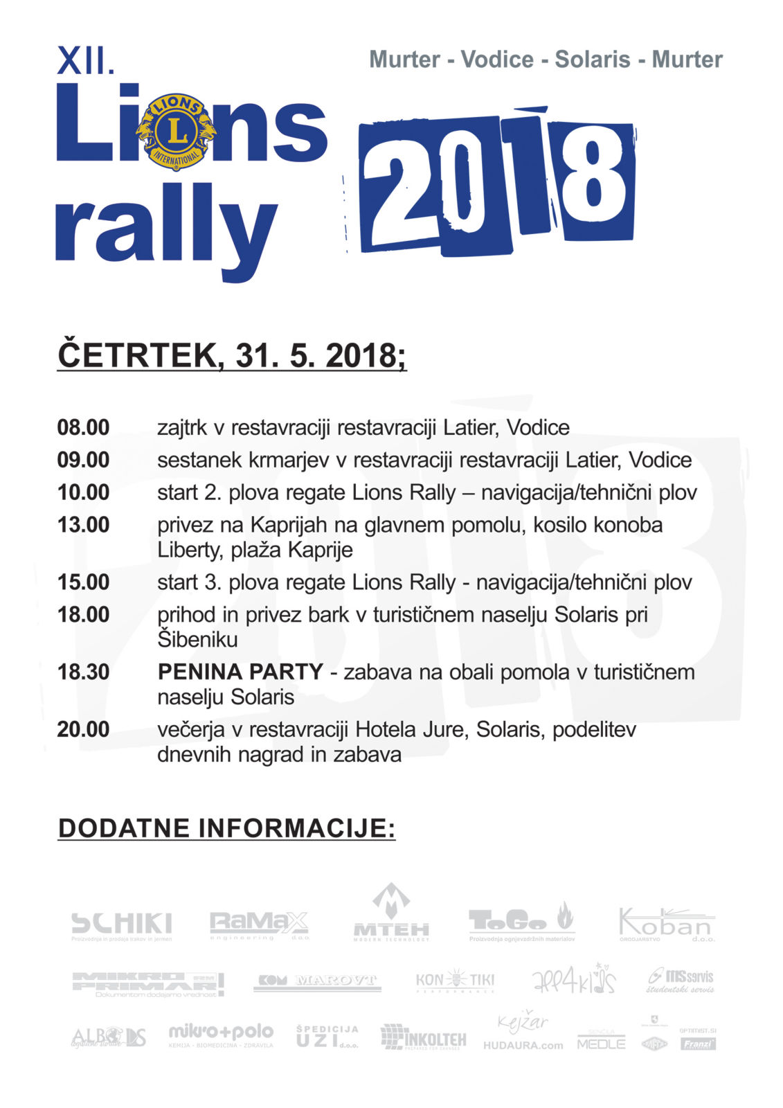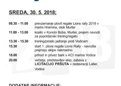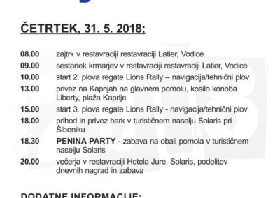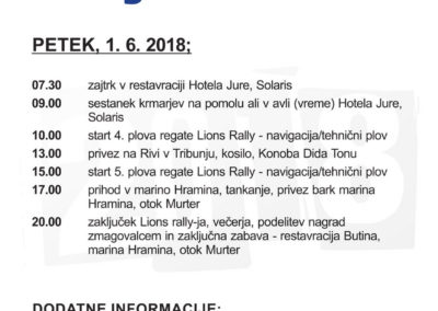 - Lions rally 2018 – DODATNA INFORMACIJA PROGRAM »NAVODILA ZA 1. PLOV REGATE«