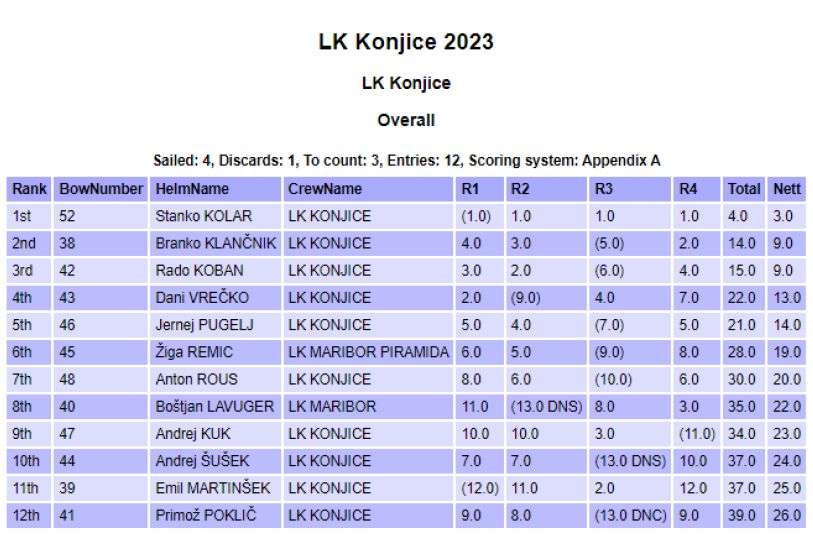 Zmago na Lions rally 2023 je odnesla ekipa Lions kluba Konjice s krmarjem Stankom KOLARJEM. Drugo mesto je tokrat pripadlo ekipi krmarja Braneta KLANČNIKA, na tretje mesto pa se je zavihtela ekipa krmarja Rada KOBANA, oba prav tako iz Lions kluba Konjice.